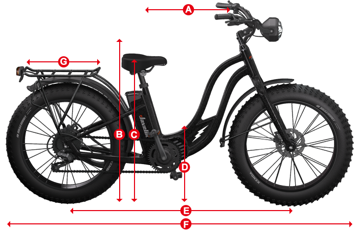 | A | Reach | 17.72″ / 45cm | B | Max Seat Height | 41.34″ / 105cm |